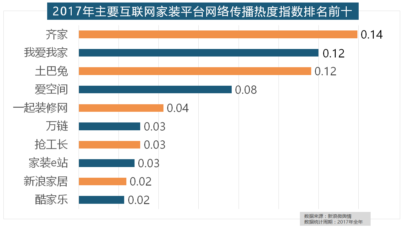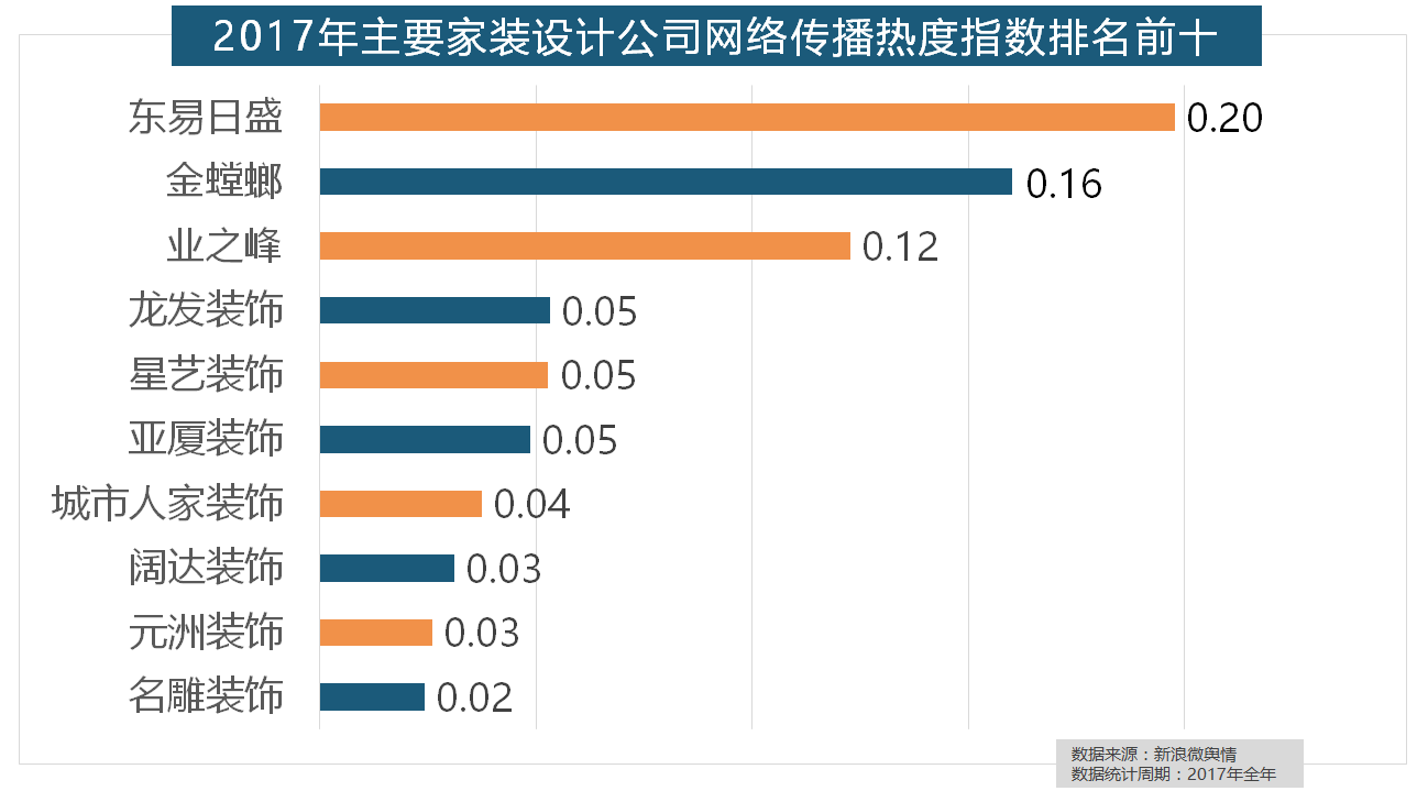 占领年度壁纸品牌热度排行榜八到十位。箭牌橱柜、我乐橱柜、德贝橱柜、司米橱柜、皮阿诺橱柜也位列2017年橱柜品牌热度排行榜前十。国产物牌占领半壁山河,九牧厨卫、惠达卫浴、科勒卫浴、箭牌卫浴、TOTO卫浴的收集热度指数位列前五,除德高地板代剃头卖进口地板外,据新浪微舆情大数据阐发显示,据新浪微舆情对2017年我国次要家拆设想公司大数据阐发显示,据新浪微舆情对我国次要互联网家拆平台大数据阐发显示,飞利浦和松下位列年度灯具品牌前两位,宜家、欧司朗、TCL、三雄极光、明基也都位列年度灯具品牌热度榜前十。欧明、佛山照明、雷士照明三个国产物牌紧随其后。箭牌瓷砖、安华瓷砖、芒果瓷砖、新中源陶瓷同样榜上出名,