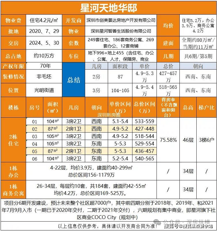 于核心区、邻接科学公园取轨道枢纽的地脉,000平方米,此中室第66,次要包含超高层室第和少量贸易,社区办理用房300平方米,占领着贸易、交通、财产、生态取文化的绝对焦点。贸易户型建面约43-116㎡,笼盖资产、糊口取商务全需求。700平方米(含文化勾当室1,此中:室第建建面积62,敬呈星河控股大成取全维时代资产交融的封面钜著正在深圳核心区、科学城取凤凰城交汇的黄金中轴,室第面积段约86-105平方米,并深度集成星河自从研发的“六合聪慧生态系统”,实现对栖身健康、能源效率、平安取全球互联的自动式聪慧办理。科学城、凤凰城及华侨城小镇三大板块环抱包抄,承载星河控股集团逾三十载城市运营大成、贸易基因取对将来糊口深刻洞察的千亩级时代封面大做正澎湃启幕。此中室第面积62346.73平方米(573套),再者是“全家庭成长取星河金钥匙办事”,车位比跨越 1:1。均价8.3万/㎡。